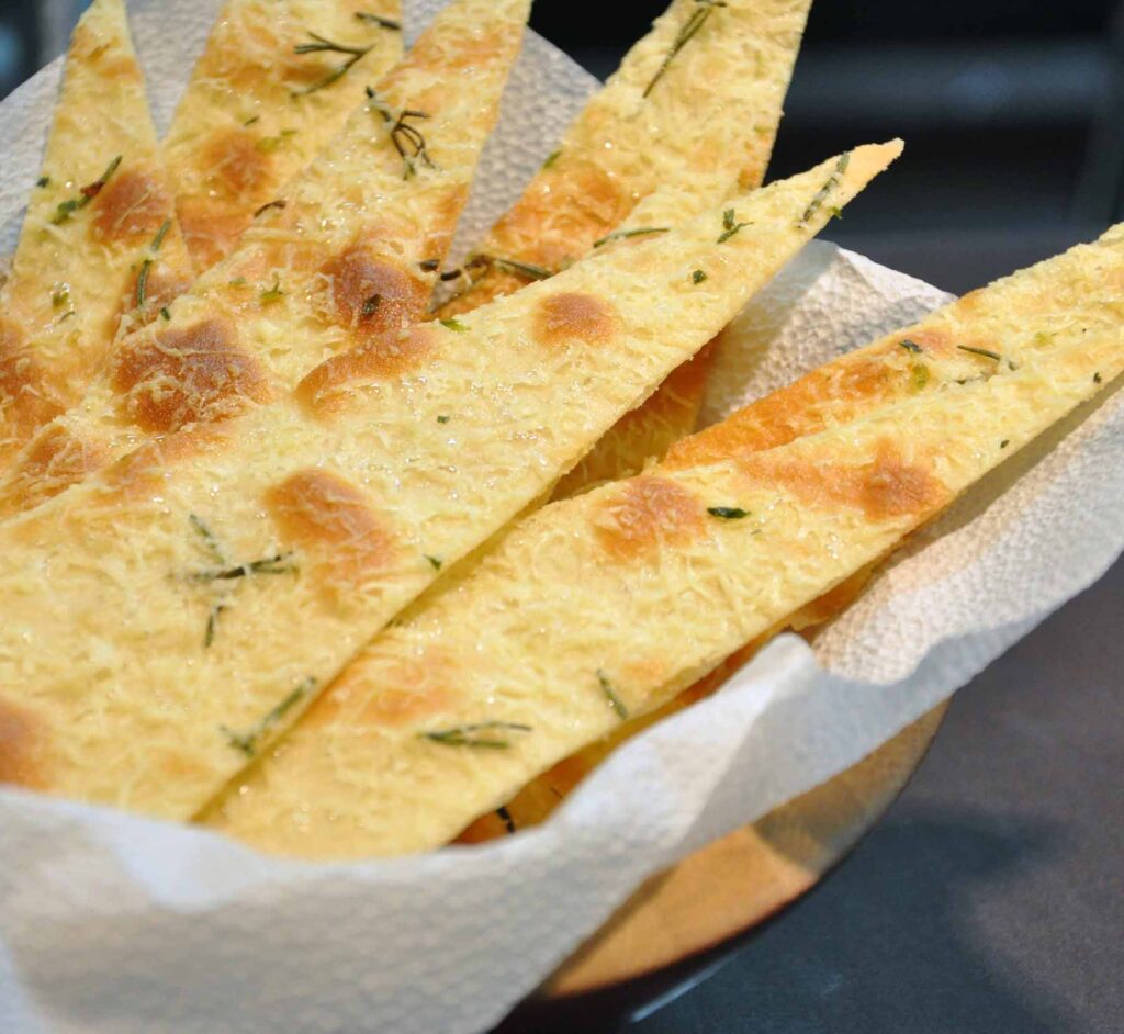 Massa Assada fininha e crocante com azeite e parmesão